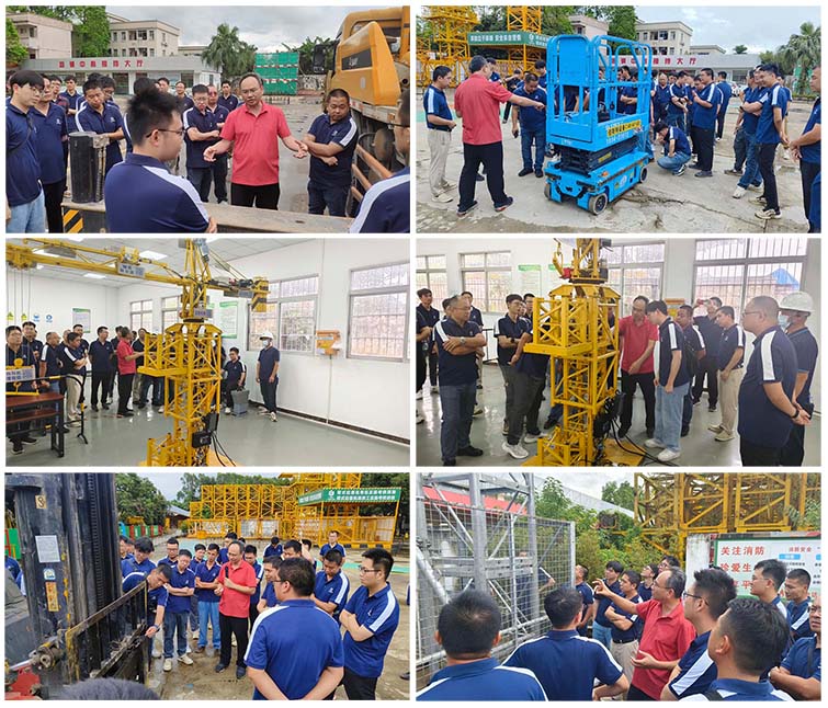 此次培训采取了“理论讲解面授+实训实操演示”的形式。培训中,讲师结合朱村基地的设施设备,对汽车吊、施工升降机、塔式起重机和叉车、高处作业平台安全管理技术进行全方位地教学讲解和操作演示,切实提升项目管理人员的机械管理专业技能水平、综合素质和安全防范理念。